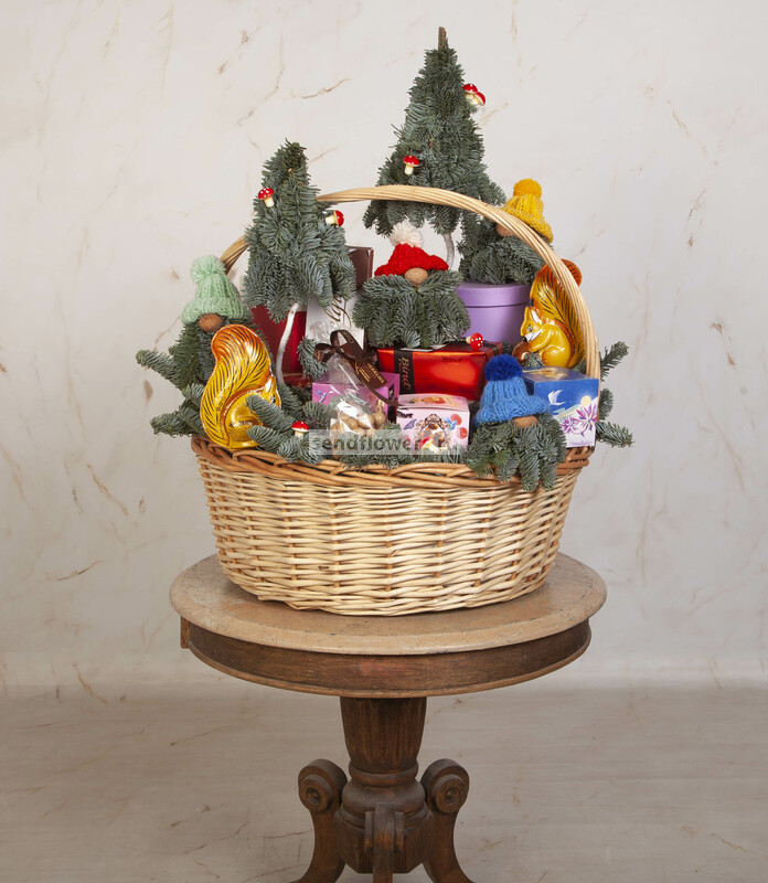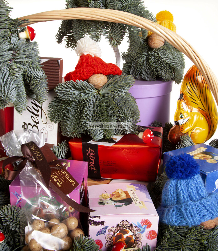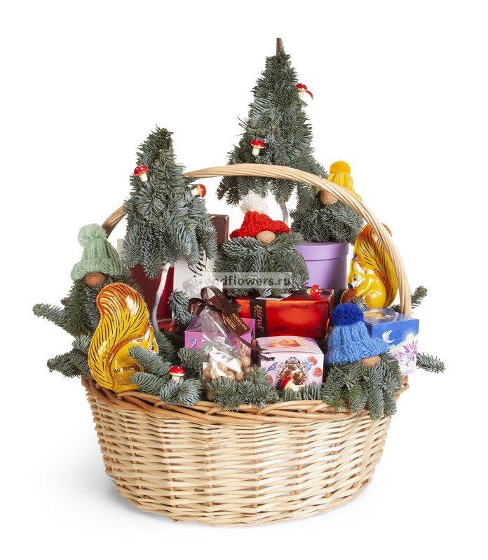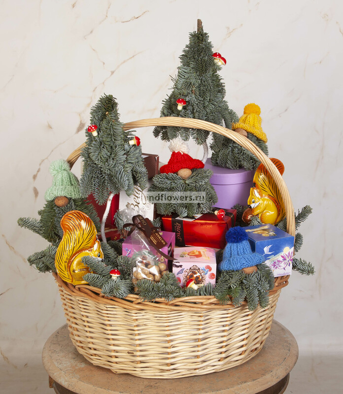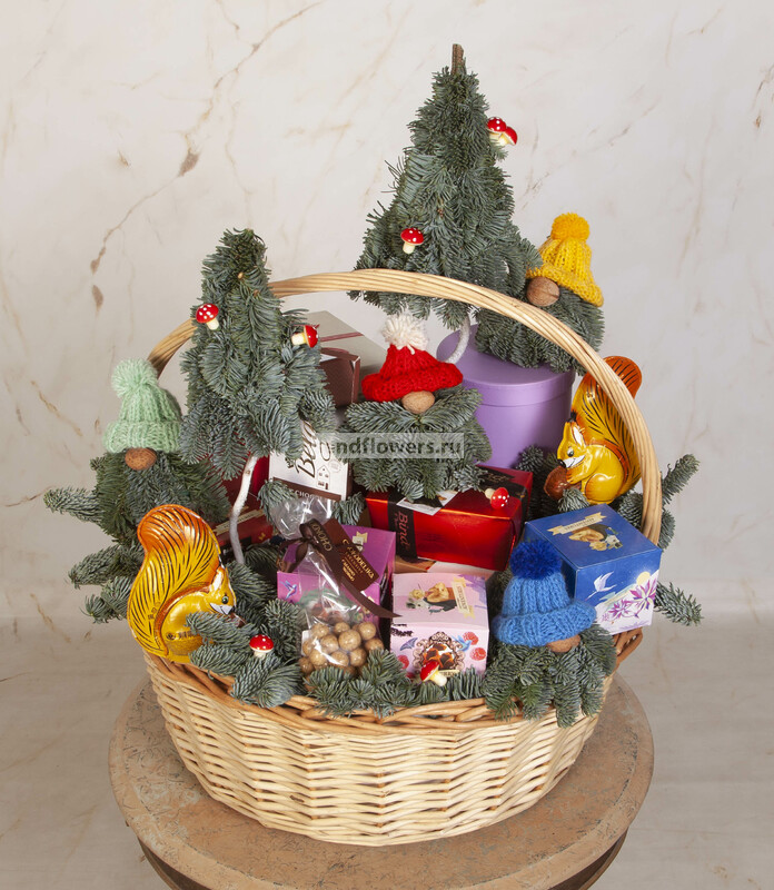 Состав: Оазис кирпич (15), Корилус (2), Лапник (4), Лента натуральная (10), Грибы декоративные (7), Елочное украшение "Санта/Снеговик" (8 см, дерево) Красный (3), Корзина под 301 розу/501 тюльпан (1), Коробка шляпная малая (цилиндр) (1), ФРАНЦУЗСКИЕ ТРЮФЕЛИ "BARON" со вкусом малины 100гр. (1), Звезды, ёлочки декор на вставке (блест.) (12), ФРАНЦУЗСКИЕ ТРЮФЕЛИ "BARON" классические 150гр. (1), Грецкий орех (4), ФРАНЦУЗСКИЕ ТРЮФЕЛИ "BARON" со вкусом чили 100гр. (1), Молочный шоколад Belgian с хрустящим печеньем 100гр (1), ФРАНЦУЗСКИЕ ТРЮФЕЛИ "BARON" с дробленым фундуком 150гр (1), wG-24/1 Коробка подарочная (1), Шоколадный батончик Bounty минис (10), Шоколадный батончик Twix минис (10), Набор шоколадных конфет "Шоколадный сундучок" (1), Вязанная цветная шапка (4), wG-32/2 Коробка подарочная (1), Набор шоколадных конфет "Red" (1), ФИГУРКА "ТИГРЕНОК" 8,5*5*8 (1), Ёлочное украшение Magic Time прищепки Мишки с мячиком с декором (4), Драже "Фундук и кофе", 100 гр. (1), Фигурный шоколад "Белочка" (2), Декоративная лошадка (1)