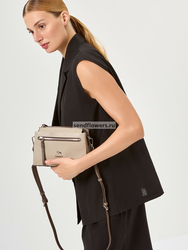 Женская сумка торговой марки Labbra из натуральной кожи. Модель застегивается на молнию. Содержит внутри один отдел, в котором имеются открытый карман и карман на молнии, по бокам имеются два отделения. На передней стенке есть карман на молнии. Максимальная длина съемного регулируемого плечевого ремня из натуральной кожи – 110 см, ширина – 1,5 см. Модель имеет ножки на дне. Не вмещает формат А4.