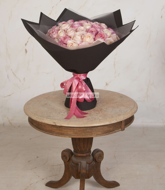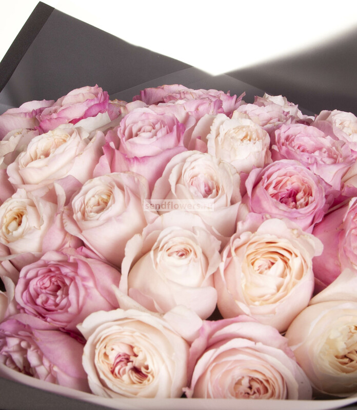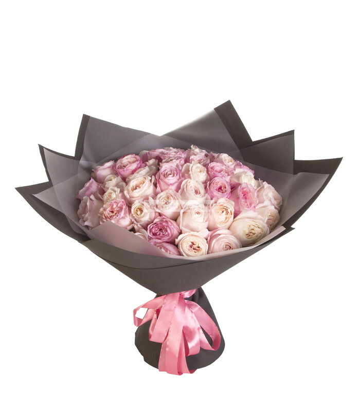 Состав: Лента натуральная (4), Роза David Austin Keira (розовая) (35), Фоамиран (2), Пленка матовая (3)