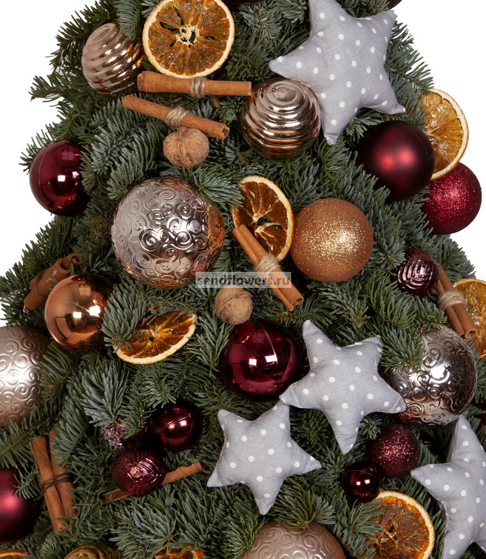 Состав: Оазис кирпич (30), Лапник (24), Шар новогодний стандартный (пластик) (70), Шарики-мини (пластик) (80), Корица (60), Сухофрукты (50), Кашпо "Порто" 9л (1), Грецкий орех (50), Шитая игрушка "Звёздочка" (серая) (8)