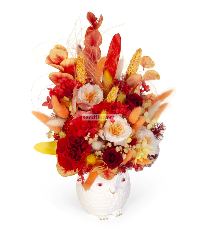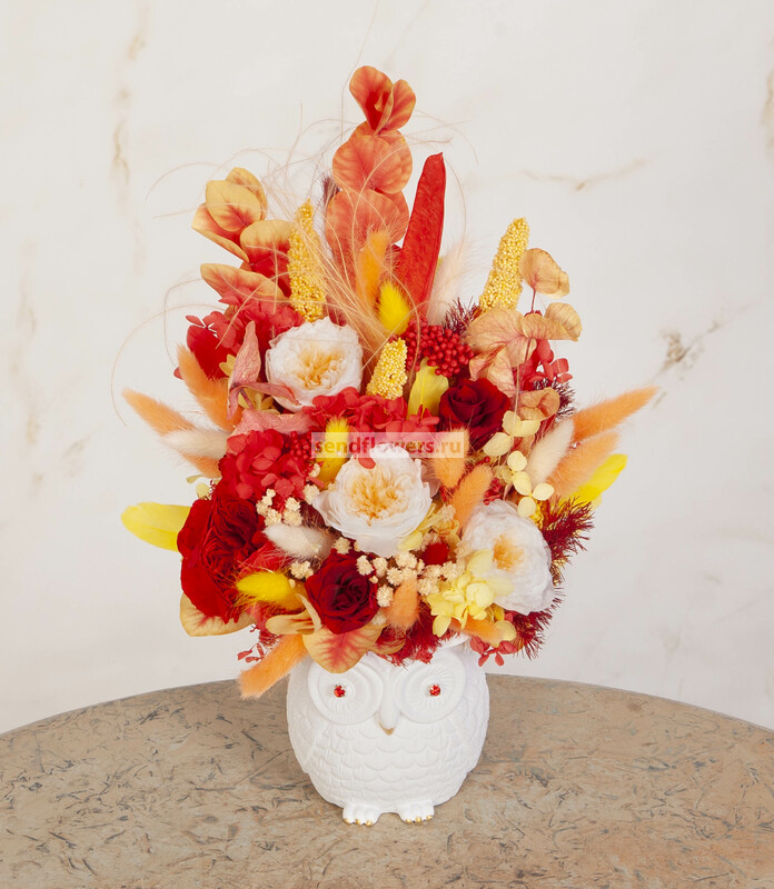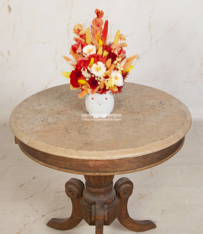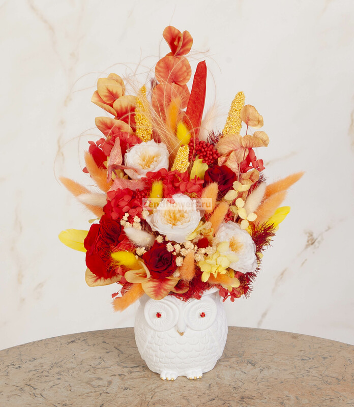 Композиция из стабилизированных цветов и сухоцветов "Филин"