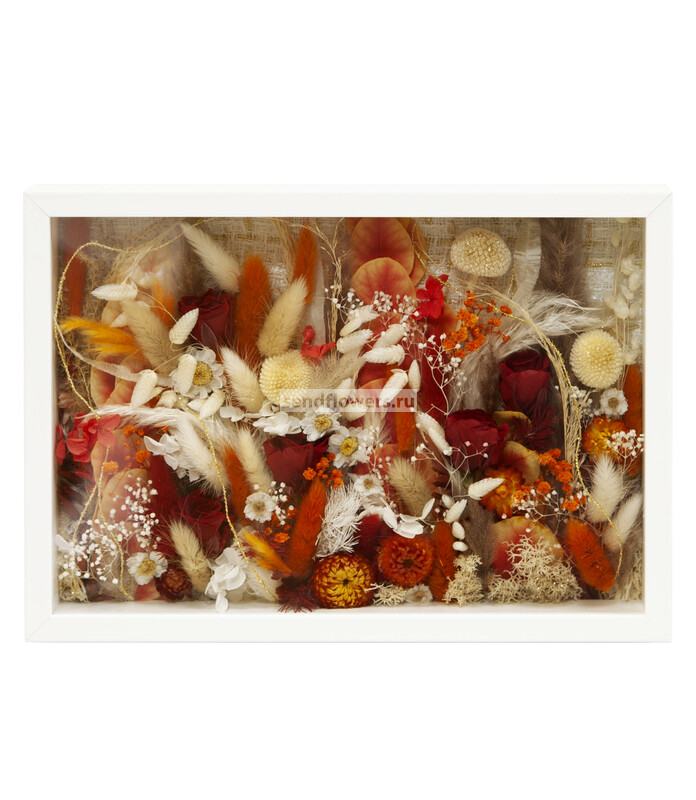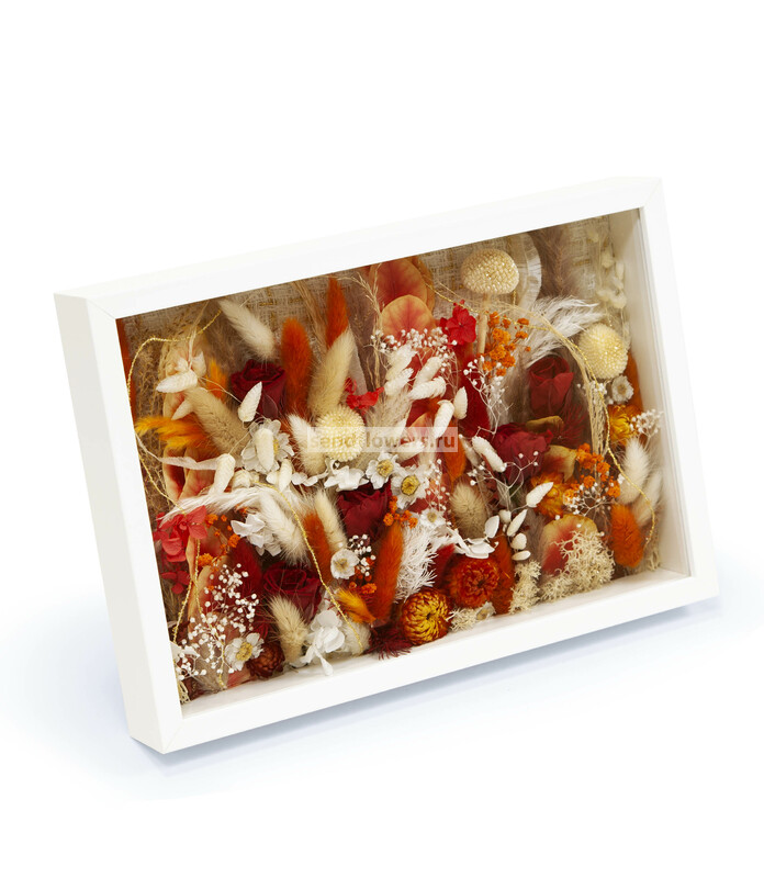 Картина в глубокой раме из сухоцветов. Высота 21,5 см, ширина 30,5 см. Картину можно поставить на стол или повесить на стену.