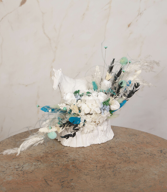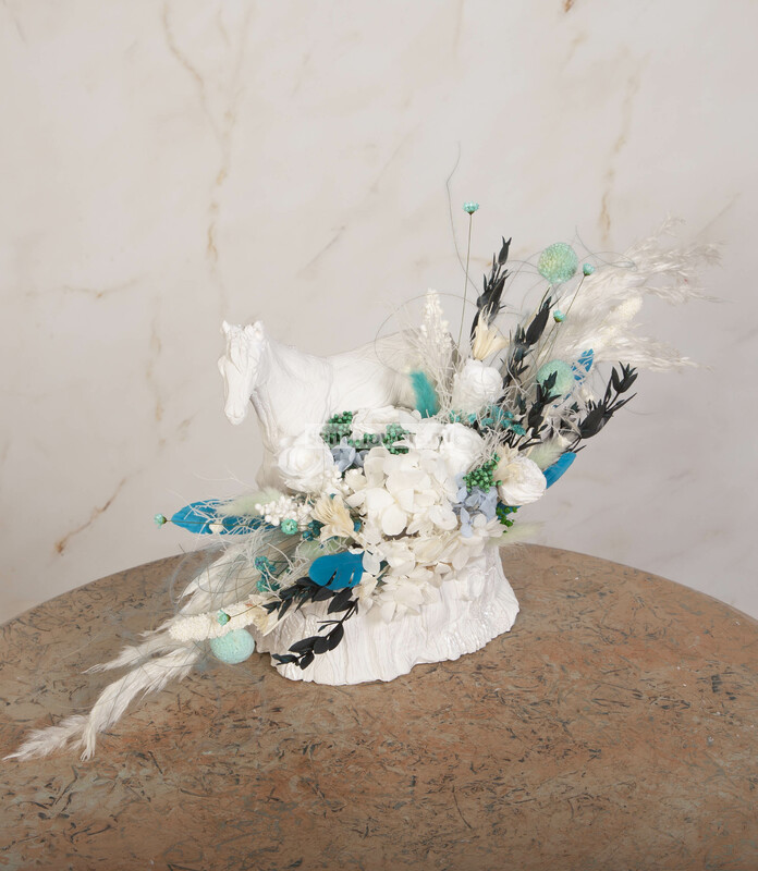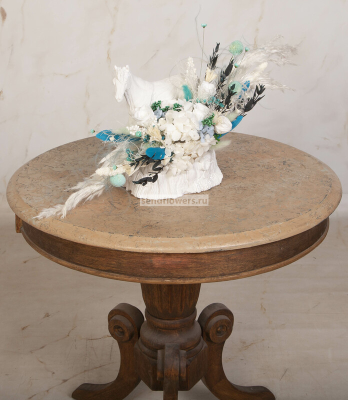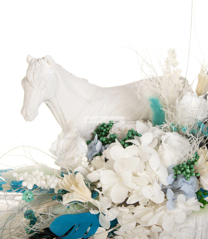 Композиция из стабилизированных цветов и сухоцветов "Лошадь на скале"