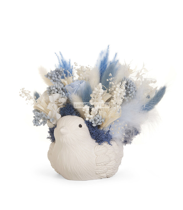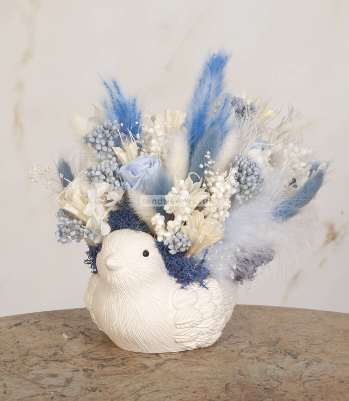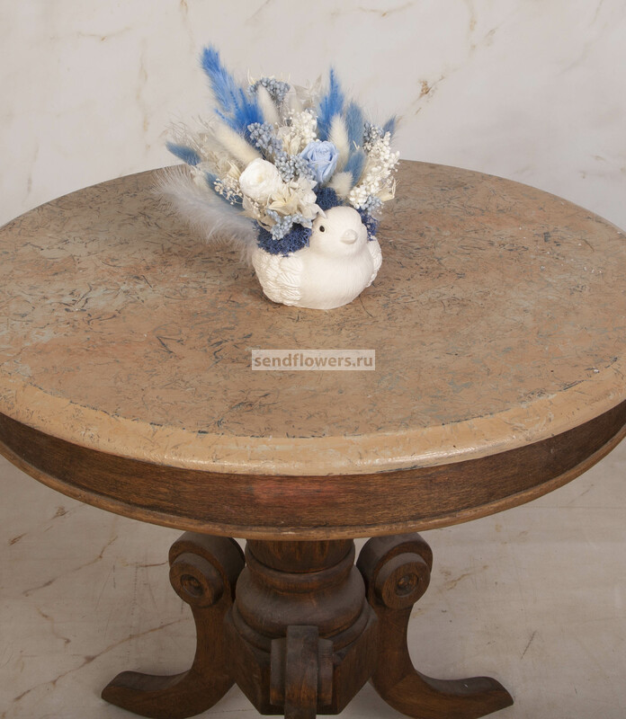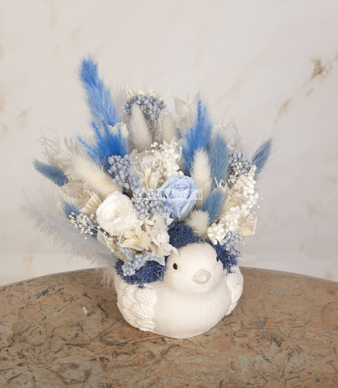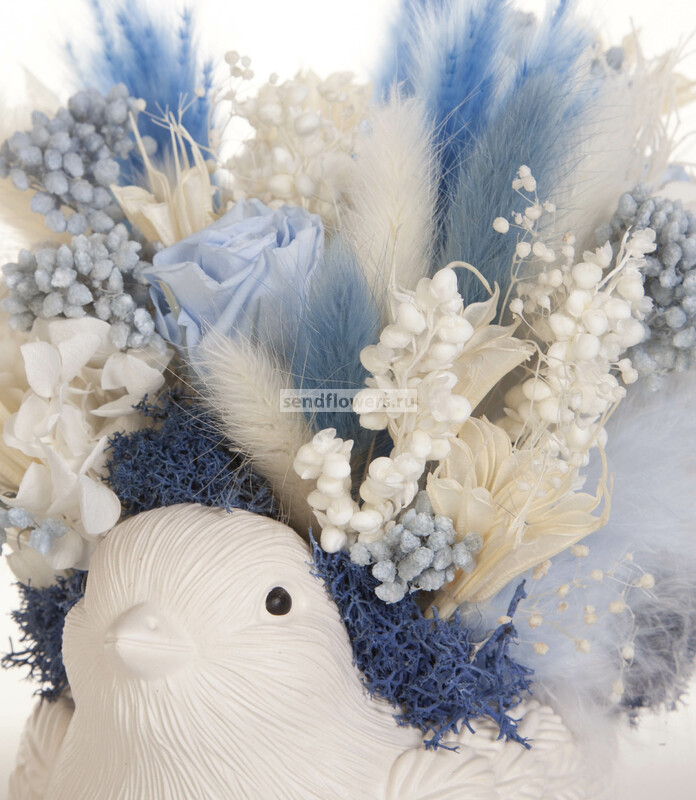 Композиция из стабилизированных цветов и сухоцветов "Птичка"
