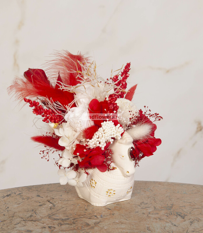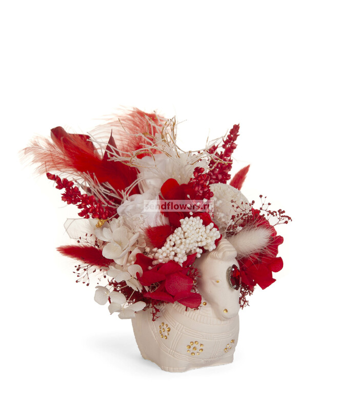 Композиция из стабилизированных цветов и сухоцветов "Символ года"